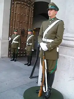 - ↑ Carabineros de Chile (2005). «Guardia de Palacio. Tradición, doctrina y disciplina». Archivado desde el original el 26 de agosto de 2007. Consultado el 2006.