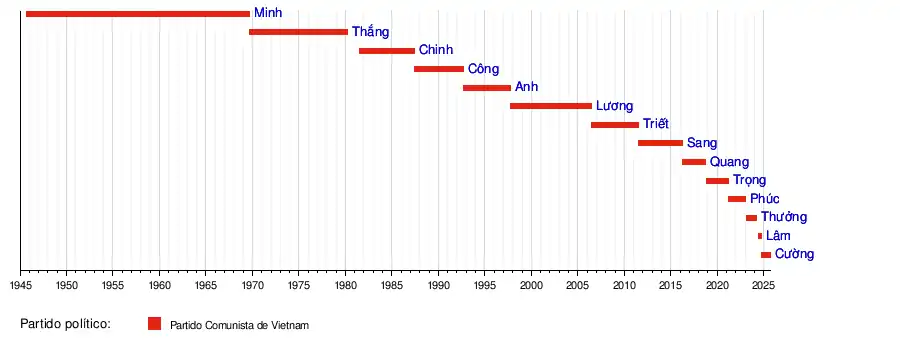 2 de septiembre de 1945 | 2 de septiembre de 1969 | Liga para la Independencia de Vietnam Partido de los Trabajadores de Vietnam |
