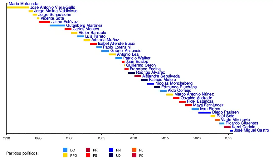 Jaime Estévez Valencia | Partido Socialista | 14 de marzo de 1995 | 19 de septiembre de 1996 | 1 año, 6 meses y 5 días | |
