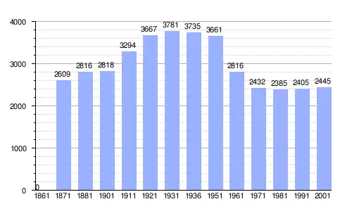 | Gráfica de evolución demográfica de Pressana entre 1861 y 2001 |