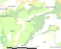 Pretin es una población y comuna francesa, en la región de Franco Condado, departamento de Jura, en el distrito de Lons-le-Saunier y cantón de Salins-les-Bains.