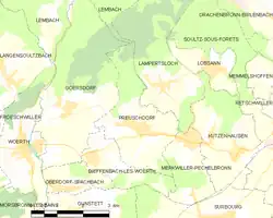 - Preuschdorf en el Institut géographique national (enlace roto disponible en Internet Archive; véase el historial, la primera versión y la última).