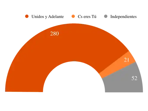 | Candidatos Independientes | Independientes | 52 | 14,7% |