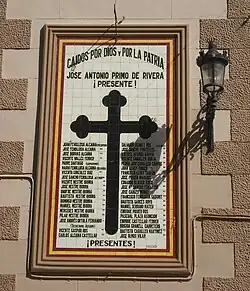 - ↑ Cazorla Sánchez, 2015, p. 193. «Las misas anuales en el Valle, todos los 20 de noviembre, en memoria de José Antonio Primo de Rivera y de los "Caídos por Dios y por España", sirvieron para reafirmar la verdad oficial y la legitimidad histórica y religiosa del Caudillo. Pero también mandaron un mensaje a toda la población de que el régimen seguía alerta y no olvidaba, que la Guerra Civil había terminado pero que cuestionar al Caudillo llevaría a los españoles a una nueva guerra».