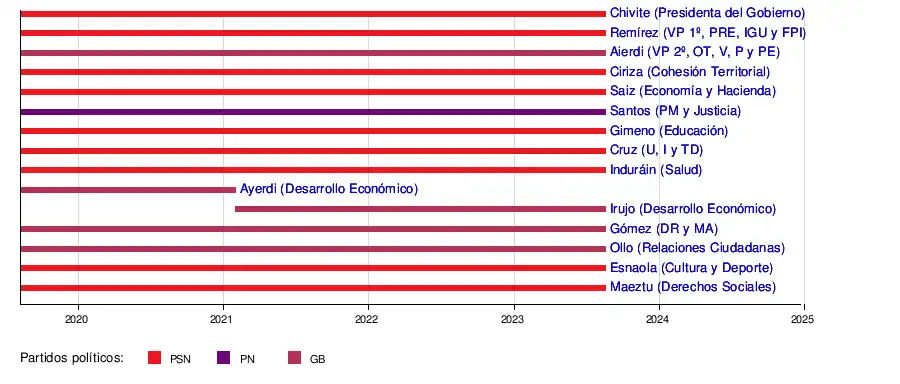 | Presidencia, Igualdad, Función Pública e Interior | Javier Remírez Apesteguía 7 de agosto de 2019 - 18 de agosto de 2023 |