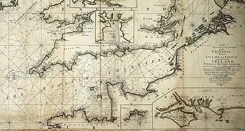 Ese mismo día el Endeavour se puso de nuevo en marcha y durante los días siguientes descendió el resto del Támesis. Al llegar a mar abierto, el 3 de agosto, se detuvo en los Downs, fondeadero habitual de la época en la entrada del Canal de la Mancha, donde permanecieron anclados 4 días.[133] Allí suben a bordo Samuel Evans, como piloto de derrota, y Richard Littleboy, hermano menor de Michel, como marinero de primera.[134] Son las últimas incorporaciones de la tripulación hasta llegar a Plymouth. El 7 de agosto Cook despide al piloto y se hace cargo del Endeavour de forma definitiva y al día siguiente levan anclas con rumbo a Plymouth. Antes tiene que ser evacuado y llevado a la orilla por problemas de salud el marinero John Swan, que es dado de baja del rol de la tripulación.[135] Quedan 73 (+2) hombres a bordo. La travesía del Canal de la Mancha hasta la bahía del puerto de Plymouth les llevó 6 días, donde llegan el 14 de agosto.[136]