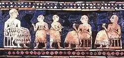 ![Sello cilíndrico de la reina Puabi, fencontrado en su tumba. Inscripción 𒅤𒀀𒉿 𒊩𒌆Pu-A-Bi-Nin "Reina Puabi".[16][17][18] La última palabra "𒊩𒌆" puede ser pronunciada “señora” Nin, o “reina” Eresh.[19]](./Flickr_-_Nic's_events_-_British_Museum_with_Cory_and_Mary%252C_6_Sep_2007_-_185.jpg)