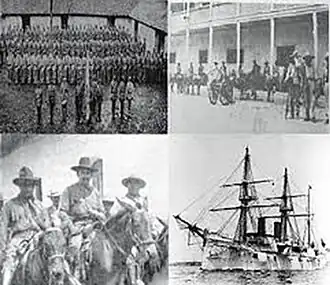 ![]() 1. Ejército nacional de Honduras 2. Batalla de San pedro sula 3. General Gregorio Ferrera 4. USS Chicago, barco enviado por Woodrow Wilson al final de la guerra. | ||||