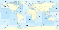 - ↑ «Principales áreas de pesca de la FAO». Organización de las Naciones Unidas para la Alimentación y la Agricultura. Departamento de Pesca y Acuicultura. Consultado el 30 de octubre de 2014.