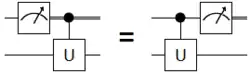 Una medida en una línea de qubit, seguida de operaciones clásicamente controladas en otros qubits, que están controladas por los resultados de la primera medida, es equivalente a las puertas cuánticas controladas correspondientes con una medida al final de la línea.[1]