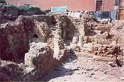 La excavación tuvo lugar en abril de 1999[14] y consistió en cuatro zanjas principales. Una en el emplazamiento de la sala capitular, otra para llegar al suelo original, cuatro metros por debajo del nivel actual del suelo, y dos para identificar las ubicaciones de los dos pilares transversales que habrían soportado el peso de la torre y el tejado.[11]
