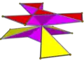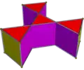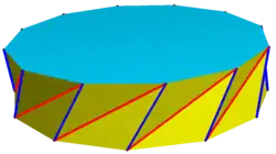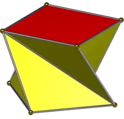 Un prisma torcido es un poliedro no convexo construido a partir de un prisma uniforme de n lados con cada cara lateral dividida en dos triángulos según una diagonal, girando la parte superior generalmente en Πn radianes (180n grados), haciendo que los lados resultantes formen intersecciones cóncavas.[13][14]