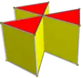 Por ejemplo, {4}×{4}, un duoprisma 4-4 es una forma de simetría inferior de un teseracto, al igual que {4,3}×{ }, un prisma cúbico. {4}×{4}×{ } (prisma de duoprisma 4-4), {4,3}×{4} (duoprisma de cubo-4) y {4,3,3}×{ } (prisma teseractico prisma) son formas de simetría inferior de un penteracto.