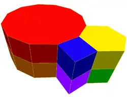 Prisma pentagonal | Prisma hexagonal | Prisma heptagonal | Prisma octogonal | Prisma eneagonal | Prisma decagonal | Prisma endecagonal | ... | Prisma apeirogonal | |