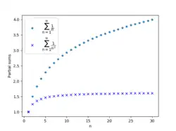 La suma de esta serie converge, pudiéndose demostrar con la siguiente desigualdad: