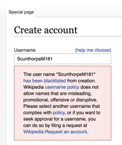 - El cadena "kunt" también está prohibido para el registro en Wikimedia. Las personas de Lakuntza no pueden crear cuentas usando su nombre de ubicación; de forma similar, no se puede utilizar la palabra "hezkuntza" (educación), palabra habitual a la hora de crear cuentas desde el colegio.
