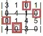 La aplicación del paso 2 nos da los mínimos en la columna. Si restamos estos valores de las columnas respectivas obtenemos las matriz reducida: