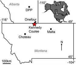 - ↑ Freedman, E.A., and Fowler, D.W., 2010, "Stratigraphic correlation of Judith River Formation (Campanian, Upper Cretaceous) exposures in Kennedy Coulee (northcentral Montana) to the Foremost Formation (Alberta): implications for anagenesis in hadrosaurid dinosaurs", Journal of Vertebrate Paleontology, SVP Program and Abstracts Book, 92
