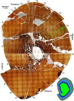 Fósiles del cráneo y reconstrucción esquemática. | ||