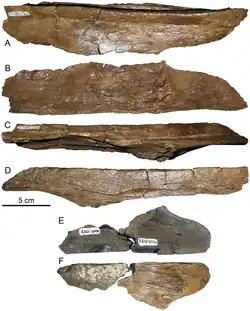 El holotipo, MOR 2919, fue hallado en una capa de la Formación Río Judith que data de fines del Campaniense, hace entre 79.8 a 79.5 millones de años, con diferencia de más o menos dos mil años. Consiste de un esqueleto parcial con cráneo de un individuo adulto. Contiene el premaxilar derecho, ambos maxilares, el yugal izquierdo, una parte del lacrimal derecho, la parte posterior del hueso nasal izquierdo, la parte media del hueso nasal derecho, la bóveda craneana desde los huesos frontales hasta los exoccipitales, ambos escamosales, ambos cuadrados, el predentario de la mandíbula, ambos dentarios, un surangular derecho, once vértebras del cuello, once vértebras dorsales, veintinueve vértebras de la cola, diecinueve cheurones, diecinueve costillas, la pelvis entera, ambas patas traseras, un segundo metatarsiano derecho y un cuarto metatarsiano derecho. Los huesos no fueron hallados articulados.[1]