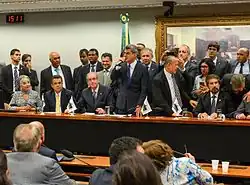 En diciembre de 2015, el periódico El Estado de S.Paulo informó que un movimiento pro-impedimento estaba siendo articulado por el vicepresidente Michel Temer. Él pretendía primero unificar su partido (PMDB) para después conseguir el apoyo de varios otros y entonces presionar a los ministros de la sigla, lo cual Dilma intentaba rachar en el Congreso. Temer había dicho que convocaría una convención para consolidar la rotura con el gobierno de Dilma e insistiría en Leonardo Picciani para el liderazgo del PMDB en la Cámara.