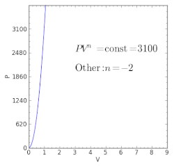 Donde p es la presión, V es un volumen específico, n, el índice politrópico, que puede ser cualquier número real, y C es una constante. La ecuación de un proceso politrópico es particularmente útil para describir los procesos de expansión y compresión que incluyen transferencia de calor. Esta ecuación puede caracterizar un amplio rango de procesos termodinámicos desde n=0 a n= lo cual incluye: n=0 (proceso isobárico), n=1 (proceso isotérmico), n=γ (proceso isentrópico), n= (proceso isocórico) y todos los valores intermedios de n. Así la ecuación es politrópica en el sentido de que describe varias líneas o procesos. Además de la representación del comportamiento de gases, la ecuación puede ser utilizada para representar ciertos comportamientos de líquidos o sólidos. La única restricción es que el proceso debe desplegar una tasa de transferencia de energía de K=δQ/δW=constante durante tal proceso. Si se desvía de tal restricción, esto sugiere que el exponente no es una constante. Para un exponente específico, otros puntos a lo largo de la curva pueden ser calculados de la siguiente manera: