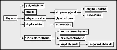El diagrama adyacente muestra esquemáticamente las principales fuentes de hidrocarburos utilizadas en la producción de productos petroquímicos.[1][2][5][6]