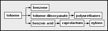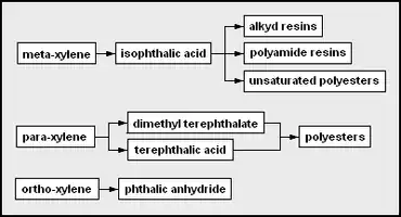 Los aromáticos incluyen benceno, tolueno y xilenos, en su totalidad denominados BTX y principalmente obtenidos de refinerías de petróleo por extracción del reformado producido en reformadores catalíticos utilizando nafta obtenida de refinerías de petróleo. El benceno es una materia prima para los tintes y detergentes sintéticos, y el benceno y el tolueno para los isocianatosMDI y TDI utilizados en la fabricación de poliuretanos. Los fabricantes utilizan xilenos para producir plásticos y fibras sintéticas.