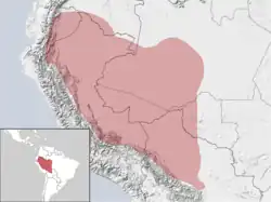 Se encuentra en Sudamérica: Bolivia, Brasil, Colombia, Ecuador y Perú.