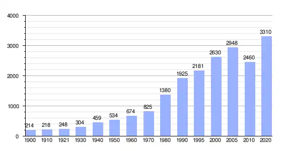 | Gráfica de evolución demográfica de Progreso entre 1900 y 2020 |