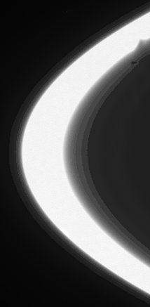 ![]() Prometeo visto por el Voyager 2 el 25 de agosto de 1981 | ||
