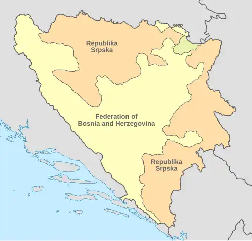 Los Acuerdos de Dayton de 1995 pusieron fin a la guerra de Bosnia y crearon la República Federal de Bosnia y Herzegovina, compuesta por dos entidades, la habitada mayormente por los bosniomusulmanes (o simplemente bosníacos) y croatas bosnios (denominada Federación de Bosnia y Herzegovina - FByH) (o Federacija Bosne i Hercegovine) y la República Srpska (o Republika Srpska - RS), habitada mayormente por los serbobosnios. Los espacios abarcados, en general, son la consolidación de los resultados de la contienda.[Nota 1]