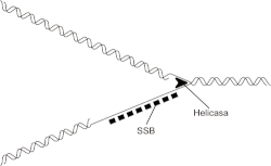 Para llevar a cabo la replicación del ADN, este debe desenrollarse para que pueda copiarse cada una de las cadenas de ADN. Este proceso no es espontáneo, requiere de proteínas de unión al ADN como las DnaA[1] que promueven el desenrollamiento e inicio de la replicación. Las SSB se unen a la cadena retrasada ya separada por la helicasa formando largas hileras, provocando que la cadena retrasada se "estire" y permita el paso correcto de la ADN polimerasa, evitando así que vuelvan a unirse las cadenas complementarias antes de que se adicionen los dNTPs que formarán la nueva cadena.[3]
