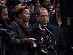 - ↑ Detrow, Scott (30 de enero de 2017). «Democrats Protest Trump's Immigration Order Outside Supreme Court». NPR (en inglés). Consultado el 30 de enero de 2017.