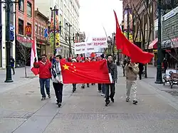El 24 de marzo de 2008, el relevo de la antorcha olímpica comenzó su ruta de 137.000 km. Los exiliados tibetanos y sus partidarios en París, Londres, San Francisco, Nueva Delhi, Islamabad, Yakarta, Seúl, etc., utilizaron el evento para organizar protestas. En algunos lugares fueron recibidos por chinos locales y otros contramanifestantes. El fiasco causó que el Comité Olímpico Internacional prohibiera el relevo internacional de la antorcha en el futuro.[48] El gobierno chino culpó a la "camarilla de los Dalai" por el levantamiento, la marcha y las protestas olímpicas y llamó a TYC una organización terrorista preparada para iniciar una guerra de guerrillas una vez que haya cruzado la frontera.[49] La RPC publicó artículos denunciando las diversas tramas y actividades históricas de los exiliados tibetanos, así como la financiación de EE.UU. a los activistas tibetanos a través del National Endowment for Democracy.[50]