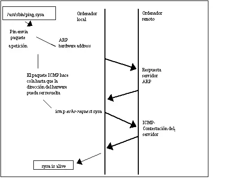 Una vez en el router, este consultará su tabla de encaminamiento, obteniendo el próximo nodo (salto) para llegar al destino, y saca el mensaje por la interfaz correspondiente. Esto se repite por todos los nodos, hasta llegar al último router, que es el que comparte el medio con el host destino. Aquí el proceso cambia: la interfaz del router tendrá que averiguar la dirección física de la IP destino que le ha llegado. Lo hace mirando su tabla ARP, y en caso de no existir la entrada correspondiente a la IP, mandará un mensaje ARP a esa IP (llegará a todos), para que le conteste indicándole su dirección física.