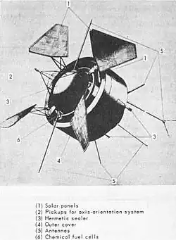 - ↑ a b c d e f Hart, Douglas M. (1987). The Encyclopedia of Soviet Spacecraft (en inglés). New York: Exeter Books. pp. 82-83. OCLC 17249881.