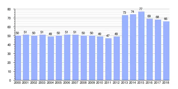 | Gráfica de evolución demográfica de Proupín entre 2000 y 2018 |