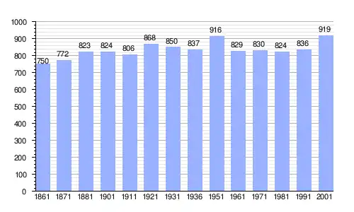| Gráfica de evolución demográfica de Provaglio Val Sabbia entre 1861 y 2001 |