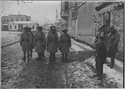 Después del comienzo de la entrada de Bulgaria en la Primera Guerra Mundial del lado de las potencias centrales en el otoño de 1915, muchos albaneses se unieron a los búlgaros que les dieron armas.[16] El Reino de Bulgaria usó su ejército para ocupar la parte oriental de Albania[17][18] al comienzo de la ocupación de Albania .