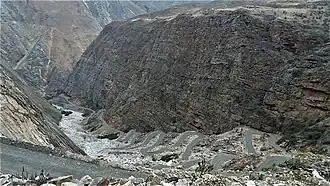 La segunda forma de llegar es una ruta de 72 km, a través de la carretera nacional PE-14N asfaltada que nace en Casma, como desvío de la carretera nacional PE-1N (carretera Panamericana norte). A 33 km de Huaraz, se toma un desvío al sur en el abra Callán Punta situada a 4200 m s. n. m. que va al distrito de Coris, a través de la trocha carrozable AN-1168, y luego se sigue un desvío al sureste, hacia el distrito de La Merced, a través de la trocha AN-1178.