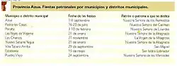 Las fiestas patronales de los distintos municipios que integran la provincia de Azua, suelen celebrarse en honor a un patrón o patrona religiosa, siendo acompañadas por el pueblo con juegos populares y tradiciones folclóricas.[22]