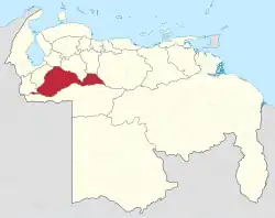 ![]() Localización de la provincia de Barinas en Venezuela | |||||||||||||||||||||||||||||||||||||