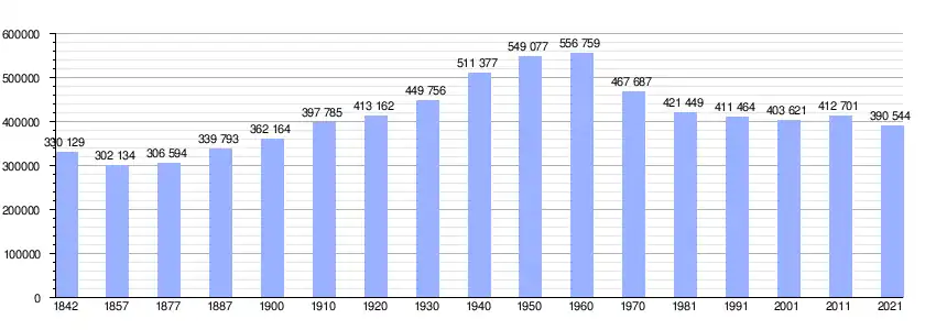 La primera mitad del siglo XX se caracterizó por un crecimiento continuo de la población, pasando de poco más de 300 000 habitantes a casi 560 000 en los años 1960. En las siguientes dos décadas, la población sufre una fuerte caída debido a la gran emigración que se produce hacia zonas más prósperas del país, sobre todo Madrid y Cataluña, perdiendo más de 200 000 habitantes en solo dos décadas.