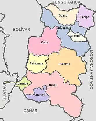 - ↑ Instituto Nacional de Estadísticas y censos (INEC). «Fascículo Provincial Chimborazo». Consultado el 19 de noviembre de 2017.