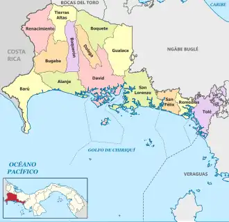 - ↑ «Municipios (distritos) de Chiriquí». Editorial OX. Consultado el 15 de noviembre de 2012.