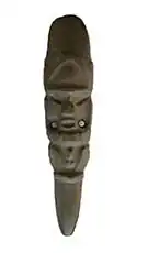 La pieza original, hallada en 1860 por un oficial del Ejército Español en una de las lomas alrededor de Holguín, es una obra excepcional dentro del arte indígena cubano. Presenta una figura antropomorfa masculina con diadema y brazos cruzados sobre el pecho, mide aproximadamente 350 mm de largo, 76 mm de ancho y 48 mm de grosor.[4]