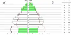 La provincia de Málaga cuenta a 1 de enero de 2024 con una población de 1 774 701 habitantes,[3] lo que la convierte en la segunda provincia más poblada de Andalucía y la sexta de España. La demografía malacitana, ha experimentado un fuerte crecimiento durante las últimas décadas en comparación tanto con la media autonómica como con la nacional. Además, la provincia cuenta con una gran cantidad de habitantes no empadronados, una población flotante que podría alcanzar los 600.000 habitantes.[16]