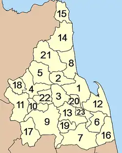 Esta provincia tailandesa se encuentra subdividida en una cantidad de distritos (amphoe) que aparecen numerados a continuación: