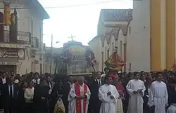 Y la misa central es realizada por el monseñor Sainz, y la procesión cuenta con 4 bandas, la banda estudiantil del colegio Guadalupano con la Cruz, la banda del colegio Nacional Gualberto Villarroel con San Juan Apóstol, la banda del Regimiento Uztaris con el Santo Sepulcro, la banda del Liceo J. M. Gandarillas o del pasante con la Virgen Dolorosa.